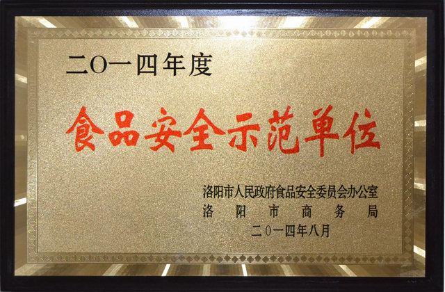 2014年9月3日下午,洛阳市召开创建食品安全示范单位现场推进会,洛阳市政府领导、相关委局负责人及食品安全示范单位申报企业参加了推进会,会上授予wending问鼎官方在线入口“食品安全示范单位”。