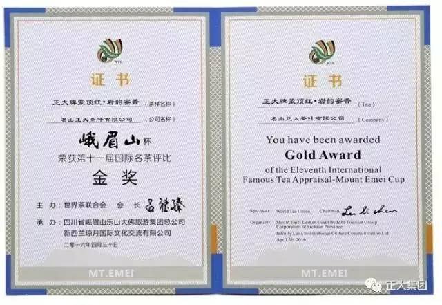 ▲正大牌蒙顶红?岩韵蜜香荣获第十一届国际名茶评比金奖