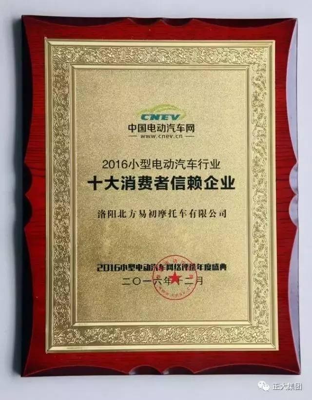 ▲洛阳北易荣获2016小型电动汽车行业“十大消费者信赖企业”
