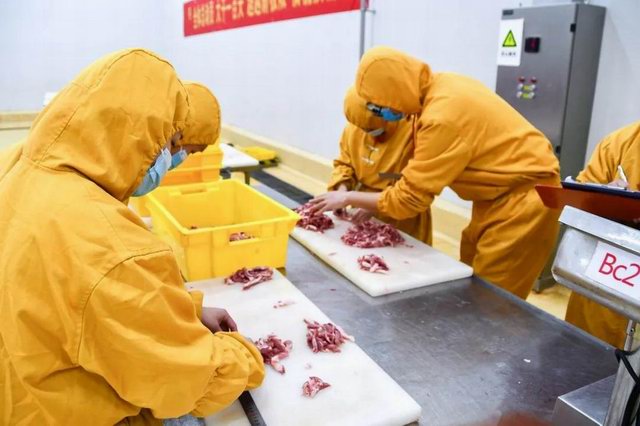 比赛分为两个项目:小酥肉原料肉切肉比赛和小酥肉包装比赛。公司屠宰车间、分割车间、调理品车间、副产车间和熟食车间共派出6支参赛队伍。小酥肉原料肉切肉比赛每个队伍时间限定20分钟,在20分钟内根据所切肉条的重量和完成质量评定名次。锅圈小酥肉包装比赛每个队伍包装300袋(约80kg)小酥肉,根据所用时间和包装合格率评定。比赛开始之前,熟食厂经理张沛宣布了比赛的规则,叮嘱参赛选手在比赛中注意安全,随后比赛拉开了帷幕。