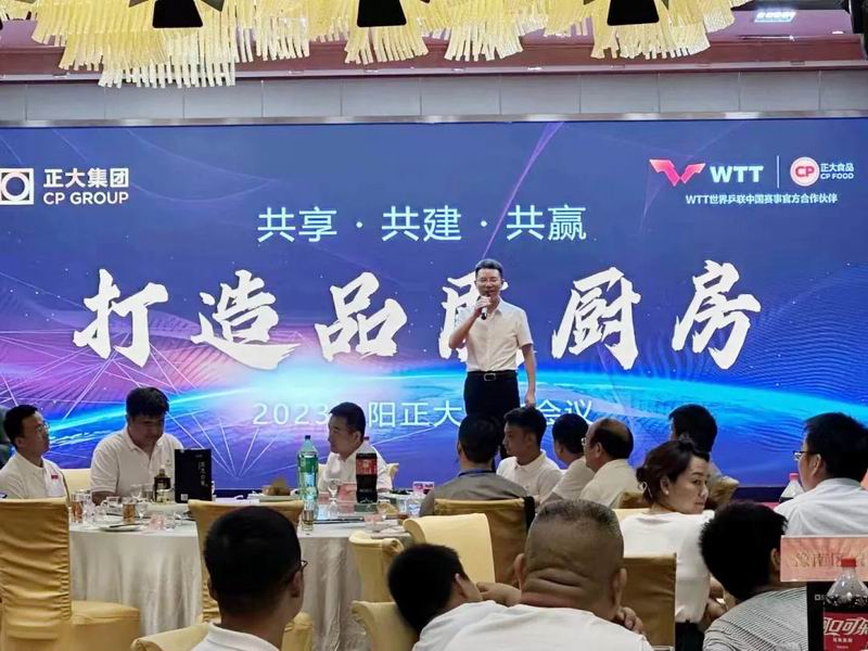 2023年7月21日,洛阳正大食品在工厂举办“打造品质厨房,共享·共建·共赢餐饮会议”。洛阳市西工区市场监督管理局局长胡少可先生、副局长范江涛先生、洛阳市餐饮与饭店行业协会党支部书记卫正欣先生,正大食品企业(洛阳)有限公司总经理曲建华、研发总监郝红涛、食安总监吴红梅等政府和公司领导与省内外90余位餐饮行业同仁出席盛会!